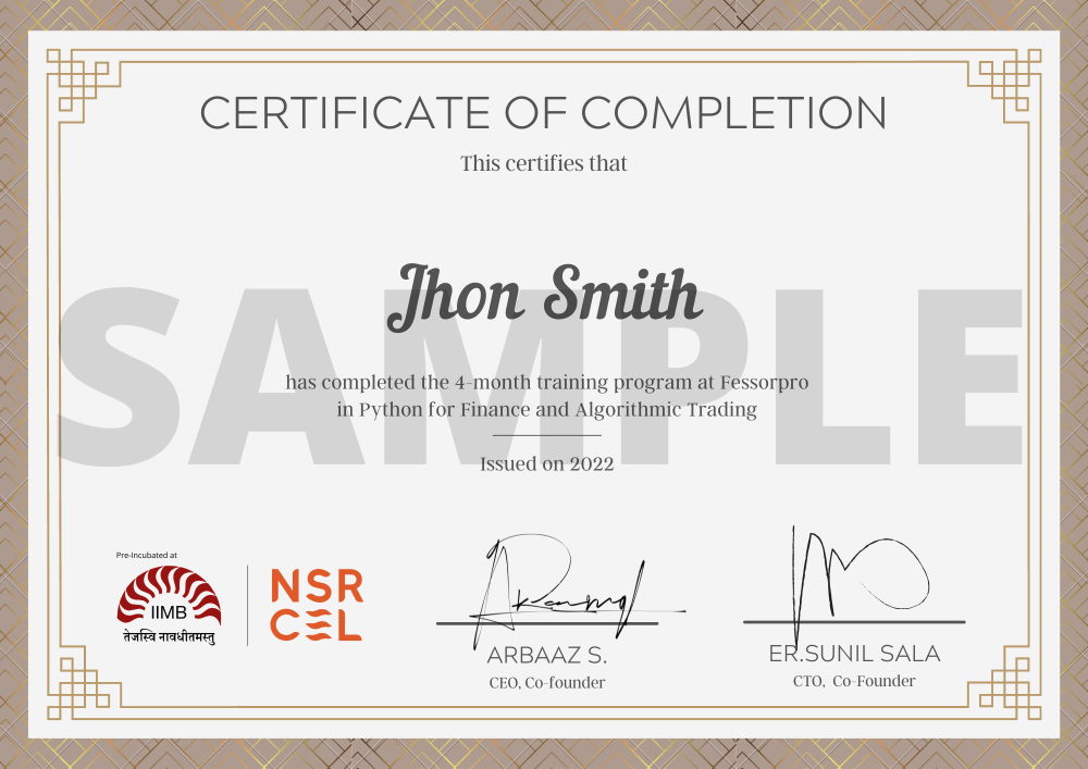 “For anyone who is looking to learn Python, Finance, and putting together the dots in order to create their own strategy or enter the job market, I think this would be a great course to take.”- Mehak Fe2650